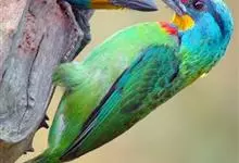 蓝喉拟啄木鸟,是须鴷科、拟啄木鸟属的鸟类。蓝喉拟啄木鸟为小型鸟类,体长20-23厘米。前额至头顶鲜红色,其上有一宽阔的黑色横带,将此红色分为前后二块;头侧、颏、喉蓝色,下喉两侧各具一红色点斑。…全部>>
