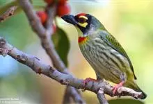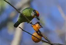 金喉拟啄木鸟,是须鴷科、拟啄木鸟属的鸟类。金喉拟啄木鸟为小型鸟类,体长19-24厘米。额深红色,头顶金黄色,后枕具一大块深红色斑,耳羽和头侧银灰色,上体草绿色,颏和上喉金黄色,下喉淡银灰色,…全部>>