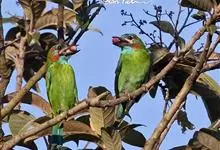 黑眉拟啄木鸟,为须䴕科、拟啄木鸟属的小型鸟类,体长20-25厘米,外形和金喉拟啄木鸟非常相似,但具粗著的黑色眉纹,头侧和耳覆羽以及下喉蓝色而不为银灰色,前颈两侧各有一块鲜红色斑。全部>>
