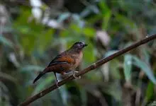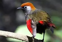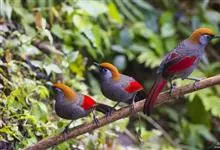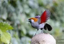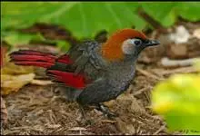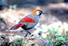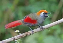 赤尾噪鹛中型鸟类,体长24~28厘米。头顶至后颈红棕色,两翅和尾鲜红色,眼先、眉纹、颊、颏和喉黑色,眼后有一灰色块斑。其余上下体羽大都暗灰或橄榄灰色。特征极明显,特别是通过鲜红色的头顶、翅和尾。…全部>>