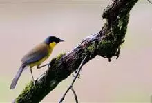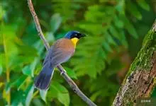 黄喉噪鹛体型略小,顶冠蓝灰色,特征为具黑色的眼罩和鲜黄色的喉。上体褐色,尾端黑色而具白色边缘,腹部及尾下覆羽皮黄色而渐变成白色。黄喉噪鹛隐匿于亚热带常绿林和浓密灌丛,于地面杂物中取食,喜食昆虫,…全部>>
