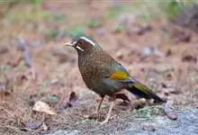 蓝翅噪鹛:噪鹛科、彩翼噪鹛属动物。中型鸟类,体长22-25厘米。上体棕橄榄褐色密被黑色鳞状斑,眼蓝白色,眼上有一长而宽阔的黑色眉纹,从眼先直到颈侧。下体棕褐色被黑色鳞状斑;尾上和尾上覆羽栗色,…全部>>
