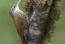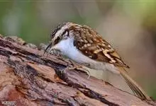 旋木雀是旋木雀科旋木雀属的一种动物。小型鸟类,体长12~15厘米,平均重10克。嘴长而下曲,上体棕褐色具白色纵纹,腰和尾上覆羽红棕色,尾黑褐色,外翈羽缘淡棕色,翅黑褐色,翅上覆羽羽端棕白色,…全部>>
