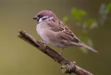 家麻雀:共有13个亚种。是小型鸟类,体长14-16厘米。背栗红色具黑色纵纹,两侧具皮黄色纵纹;颏、喉和上胸黑色,脸颊白色,其余下体白色,翅上具白色带斑。雄鸟与树麻雀的区别在顶冠及尾上覆羽灰色,耳无黑…全部>>