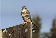 红隼:是隼科、隼属的小型猛禽之一。体重173-335克,体长305-360毫米。翅狭长而尖,尾亦较长,外形和共同爪隼非常相似。雄鸟头蓝灰色,背和翅上覆羽砖红色,具三角形黑斑;腰、尾上覆羽和尾羽蓝灰色,…全部>>
