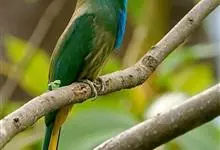 蓝须夜蜂虎是佛法僧目、蜂虎科的鸟类,体长约30厘米,是绿色林栖型蜂虎,蓝色的胸羽蓬松,嘴厚重而下弯。成鸟顶冠淡蓝,腹部棕黄带绿色纵纹。尾羽腹面黄褐。亚成鸟全身绿色。喉、胸部中央的羽甚长和亮色;该物种…全部>>