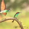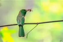蓝颊蜂虎:是蜂虎科、蜂虎属的鸟类,共有2个亚种。体长27-33厘米,翼展46-49厘米,体重38-50克。嘴形细长而下弯,先端尖,…全部>>