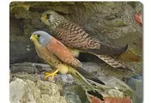 红隼:是隼科、隼属的小型猛禽之一。体重173-335克,体长305-360毫米。翅狭长而尖,尾亦较长,外形和共同爪隼非常相似。雄鸟头蓝灰色,背和翅上覆羽砖红色,具三角形黑斑;腰、尾上覆羽和尾羽蓝灰色,…全部>>