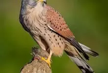 红隼:是隼科、隼属的小型猛禽之一。体重173-335克,体长305-360毫米。翅狭长而尖,尾亦较长,外形和共同爪隼非常相似。雄鸟头蓝灰色,背和翅上覆羽砖红色,具三角形黑斑;腰、尾上覆羽和尾羽蓝灰色,…全部>>