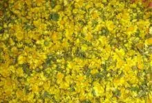 野菊花为菊科多年生草本植物,野菊花头状花序的外形与菊花相似,呈类球形,直径0.3~1cm,棕黄色。总苞由4~5层苞片组成。舌状花一轮,黄色,皱缩卷曲;管状花多数,深黄色。体轻。性苦、味辛,微寒。野生…全部>>