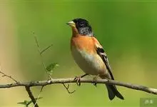 燕雀属小型鸟类,体长14-17厘米。嘴粗壮而尖,呈圆锥状。雄鸟从头至背辉黑色,背具黄褐色羽缘。腰白色,颏、喉、胸橙黄色,腹至尾下覆羽白色,两胁淡棕色而具黑色斑点。两翅和尾黑色,翅上具白斑。…全部>>
