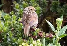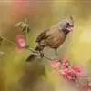红眉朱雀:体长15厘米,是一种中等体型的朱雀。上体褐色斑驳,眉纹、脸颊、胸及腰淡紫粉,臀近白。雌鸟无粉色,但具明显的皮黄色眉纹。雄雌两性均甚似体型较小的曙红朱雀,但嘴较粗厚且尾的比例较长。…全部>>