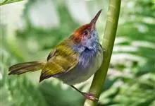 黑喉缝叶莺:体长11.5厘米,是一种小型的顶冠棕色、腹部白色的莺。尾甚长而常上翘,臀黄色,具特征性的偏黑色喉,上体橄榄绿色,头侧灰色。雌鸟色暗,头少红色且喉少黑色。与长尾缝叶莺的区别在后顶冠亦为棕色,…全部>>
