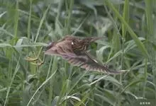 山麻雀:小型鸟类,体长13-15厘米。雄鸟上体栗红色,背中央具黑色纵纹,头棕色或淡灰白色,颏、喉黑色,其余下体灰白色或灰白色沾黄。雌鸟上体褐色具宽阔的皮黄白色眉纹,颏、喉无黑色。…全部>>