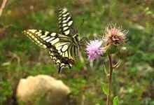 无尾凤蝶,Papilio demoleus ,鳞翅目凤蝶科凤蝶属的一个物种。展翅宽70~80mm。翅膀黑色,具不规则的米黄色斑;下翅有明显橙色斑,无尾状突起,无近似种。春至初夏最多,…全部>>