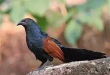 褐翅鸦鹃,是鹃形目鸦鹃科鸦鹃属的鸟类。褐翅鸦鹃的身体为黑色;头颈和胸带蓝紫色金属光泽并具黑亮的羽干纹,下胸至腹部泛金属绿光泽;两翼和肩部为棕栗色,外侧飞羽具暗色羽端,尾羽闪铜绿色光泽;虹膜赤红色,…全部>>