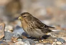 黄嘴朱顶雀:为燕雀科金翅雀属的鸟类。体重10-18克,体长112-162毫米。是一种体型小的褐色具纵纹的雀鸟。腰粉红或近白。与其他朱顶雀的区别在头顶无红色点斑,体羽色深而多褐色,尾较长,叫声也不同。…全部>>
