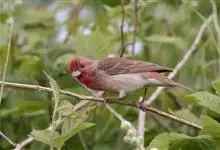 普通朱雀是雀形目雀科朱雀属鸟类,又名红朱雀、马料、青麻料。雄鸟上体红色,下体淡红色;头部、喉部、胸部及腰部亮红色;背部褐色染红色;两翼及尾黑褐色,羽缘染红色。雌鸟上体橄榄褐色,下体近白色,…全部>>