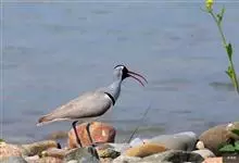 鹮嘴鹬体长40厘米,是一种灰、黑及白色鹬。识别特征为腿及嘴红色,嘴长且下弯。一道黑白色的横带将灰色的上胸与其白色的下部隔开。翼下白色,翼上中心具大片白色斑。幼鸟上体具皮黄色鳞状纹,黑色斑纹不甚清楚,…全部>>