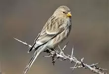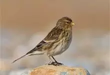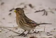 黄嘴朱顶雀:为燕雀科金翅雀属的鸟类。体重10-18克,体长112-162毫米。是一种体型小的褐色具纵纹的雀鸟。腰粉红或近白。与其他朱顶雀的区别在头顶无红色点斑,体羽色深而多褐色,尾较长,叫声也不同。…全部>>