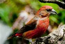 红交嘴雀:体重28-48克,体长145-175毫米。是燕雀科交嘴雀属的鸣禽。是一种小型的燕雀。雄鸟通体砖红色,上体较暗,腰鲜红色;翼和尾近黑色,头侧暗褐色;雌鸟暗橄榄绿或染灰色,…全部>>