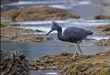 岩鹭,鹭科白鹭属鸟类,中型涉禽,体长60-75厘米,翼长25-30毫米,体重330-700克。嘴较长而粗钝,颈长,脚较粗短,体色有白色和黑色两种色型。黑色型较常见,体羽清一深灰色并具短冠羽,…全部>>
