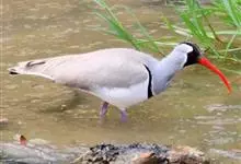 鹮嘴鹬体长40厘米,是一种灰、黑及白色鹬。识别特征为腿及嘴红色,嘴长且下弯。一道黑白色的横带将灰色的上胸与其白色的下部隔开。翼下白色,翼上中心具大片白色斑。幼鸟上体具皮黄色鳞状纹,黑色斑纹不甚清楚,…全部>>