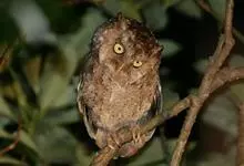 黄嘴角鸮:小型鸟类,体长18-21厘米。的茶黄褐色角鸮。眼黄色,嘴奶油色,特征为无明显的纵纹或横斑,仅肩部具一排硕大的三角形白色点斑。主要栖息于海拔2000米以下的山地常绿阔叶林和混交林中,…全部>>