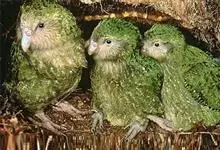 鸮鹦鹉:是鹦鹉科、鸮鹦鹉属的鸟类。新西兰人叫“kakapo”,这是当地的毛利语,kaka即“鹦鹉”,po的意思是“夜”。中文翻译成鸮鹦鹉颇为神似,因为鸮鹦鹉的脸盘的确酷似夜间活动的猫头鹰。…全部>>