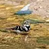 日本鹡鸰:体长约20厘米。上体多黑色,额、颏及眉纹白,下体白,两翼黑而具白色横斑及羽缘,尾黑而边缘白色。虹膜深褐色;嘴黑色;脚黑色。飞行时发出嘁喳声,具复杂而独特的鸣声。喜农田、稻田和溪流。…全部>>