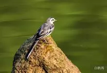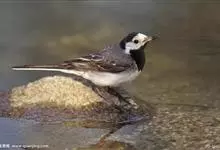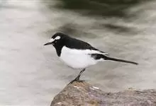 日本鹡鸰:体长约20厘米。上体多黑色,额、颏及眉纹白,下体白,两翼黑而具白色横斑及羽缘,尾黑而边缘白色。虹膜深褐色;嘴黑色;脚黑色。飞行时发出嘁喳声,具复杂而独特的鸣声。喜农田、稻田和溪流。…全部>>