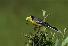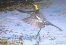 黄头鹡鸰:是雀形目鹡鸰科的鸟类。体长约18厘米,体型较纤细,喙较细长,先端具缺刻;翅尖长,内侧飞羽极长,几与翅尖平齐;尾细长呈圆尾状,中央尾羽较外侧尾羽为长。多活动于水边,停息时尾上下摆动,…全部>>