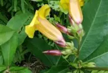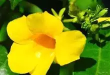 大花软枝黄蝉是软枝黄蝉的一个变种,夹竹桃科黄蝉属植物。藤状灌木,长达4米,枝条软弯垂,具白色乳汁。叶纸质,椭圆形、卵圆形或倒卵形,花序着花4-5朵,花冠比原变种大形,橙黄色,花冠喉部具5个发亮的斑点…全部>>