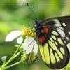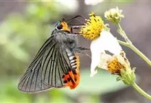 报喜斑粉蝶是粉蝶科斑粉蝶属的一种动物,又名红肩粉蝶、藤粉蝶等。幼虫群集性很强,从同一卵块孵化出的幼虫,幼龄期全部群集在一起取食,高龄幼虫常分散成小群。幼虫群集危害叶片,造成秃枝,严重者可将树吃成光杆,…全部>>