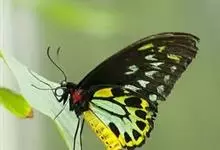 金裳凤蝶是凤蝶科、裳凤蝶属的动物。金裳凤蝶身体呈黑色,头、颈和胸侧有红毛,腹部有黑黄两色相间条纹,雄蝶前翅黑色,具黑天鹅绒光泽,各脉两侧灰白色,后翅金黄色,各室外缘有等腰三角形黑斑1枚,斑内侧有晕,…全部>>