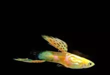 孔雀鱼,是鳉形目花鳉科花鳉属鱼类。孔雀鱼体形修长,其形态变化主要在尾鳍,常见的尾鳍形态有圆尾、尖尾、铲尾等。雌、雄鱼差别明显,雄鱼的大小只有雌鱼的一半左右,雄鱼体色丰富多彩,尾部形状千姿百态。…全部>>