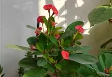 铁海棠为大戟科大戟属蔓生灌木植物;茎多分枝,具纵棱,呈旋转状;叶互生,通常集中于嫩枝上;每个花序基部边缘具微小的红色尖头;苞叶先端圆且具小尖头,无柄,上面鲜红色,下面淡红色;苞片丝状;子房光滑无毛,…全部>>