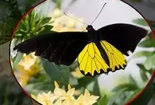 荧光裳凤蝶是凤蝶科裳凤蝶属的一种大型蝴蝶,该物种共有3个亚种。该蝶飞翔的时候姿态优美,前翅黑色,后翅金黄色和黑色交融的斑纹在阳光照射下金光灿灿,显得华贵美丽。幼虫寄主为多种马兜铃属的植物,取食马兜铃…全部>>