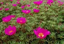 大花马齿苋:一年生草本,高10-30厘米。茎平卧或斜升,紫红色,多分枝,节上丛生毛。叶密集枝端,较下的叶不规则互生,叶片细圆柱形,无毛。花单生或数朵簇生枝端,直径2.5-4厘米,…全部>>