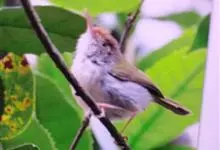 普通缝叶莺,是雀形目鹅科莺亚科缝叶莺属一种。体长10-14厘米,体重7-10克,雄鸟前额棕红,头顶至枕棕橄榄褐,上体橄榄绿染黄,飞羽及尾羽暗褐;繁殖期雄鸟的中央尾羽特形延长,下体淡皮黄白色。…全部>>