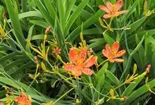 雄黄兰是鸢尾科雄黄兰属多年生草本植物。雄黄兰具扁球径,叶多基生,剑形;花茎由多花给成疏散的穗状花序,花冠漏斗状,深橙红色;蒴果。 花期7-8月,果期8-10月 。雄黄兰因橘红色的花与雄黄颜色相似而得名。…全部>>