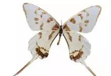 不丹褐凤蝶Bhutanitisludlowi Gabriel 是鳞翅目凤蝶科的昆虫。 稀少而美丽,是不丹的国蝶,被称为“高山美人”。是褐凤蝶属中最美丽大型者。四翅狭长,背景色为褐色,前翅有七条黄白色…全部>>