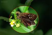 姜弄蝶 Udaspes folus ,又叫银斑姜蝶。幼虫吐丝粘叶成苞,隐藏其中取食,受害叶呈缺刻或在1/3处断落,…全部>>