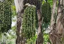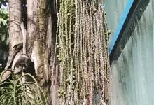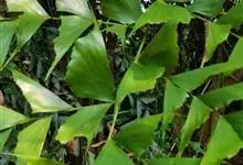 鱼尾葵,棕榈科鱼尾葵属植物。鱼尾葵幼叶近革质,老叶厚革质;羽片互生,罕见顶部的近对生,最上部的羽片大,呈樱形,侧边的羽片小,菱形似鱼尾。外缘笔直,花聚生3朵,花瓣黄色;萼片宽圆形;花药线形,黄色,…全部>>