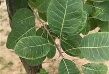 粉背黄栌叶卵圆形,较大,长3.5-10厘米,宽2.5-7.5厘米,无毛,但叶背显著被白粉;叶柄较长,1.5-3.3厘米,…全部>>