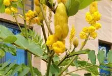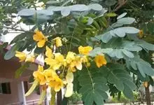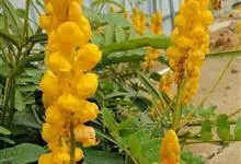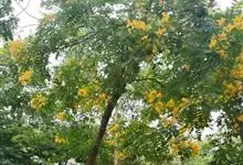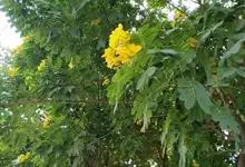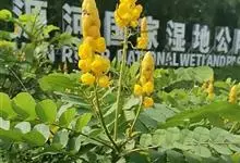 黄槐 H. S. Irwin et Barneby)为豆科,决明属植物。落叶小乔木或灌木状。羽状复叶,倒卵状椭圆形,先端圆。基部稍偏斜;叶轴下部2或3对小叶之间有一棒状腺体。花大,鲜黄色,种子间有时…全部>>
