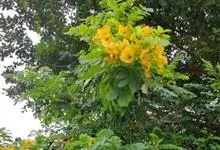 黄槐决明 H. S. Irwin & Barneby )是豆科决明属灌木或小乔木。黄槐决明分枝多,小枝有肋条;树皮光滑,灰褐色;嫩枝、叶轴、叶柄被微柔毛;叶轴及叶柄呈扁四方形;小叶长椭圆形或卵形,…全部>>