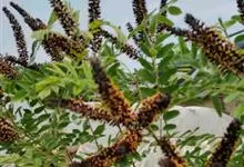 紫穗槐是豆科紫穗槐属落叶灌木植物。紫穗槐小枝幼时密被短柔毛,后渐变无毛;小叶卵形或椭圆形;穗状花序顶生或生于枝条上部叶腋,花冠紫色;荚果长圆形,成熟时棕褐色;花果期5-10月。…全部>>