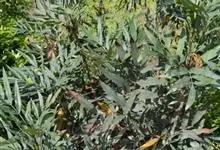 十大功劳 Fedde),小檗科十大功劳属常绿灌木植物。叶子较大且较多,呈椭圆形,绿色,表面光滑无毛,叶柄较长;花朵较小,呈多边形,黄色,花瓣对称分布,表面有绒毛;果实呈圆形,褐色,…全部>>