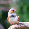 橙颊梅花雀体长约10厘米,头部灰色,两侧有大块橙色区域,嘴基及眼下方有黑纹,两条黑纹间呈白色,颊部有橙红色块斑,喙为红色至橙红色,背部及翼为褐色,腰为鲜红色,身体腹面淡灰色,腹部白色至皮黄色,…全部>>